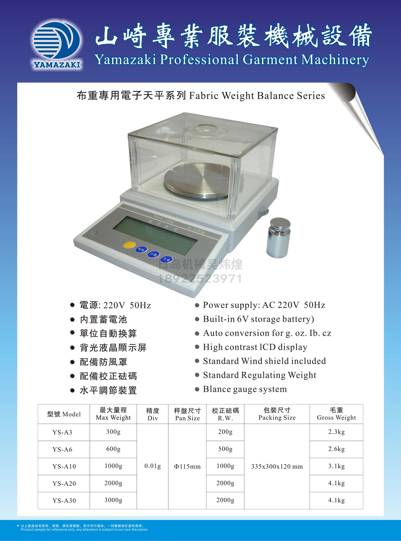 • YAMAZAKI YS-A布重專(zhuān)用電子天平